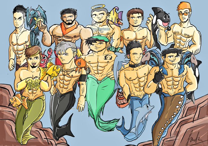 to end this year's #mermay , here are all of @toastwire 's Original Characters in my style . Top left : Raiku, Ashwin, Keith, Lance , Oaken Bottom left : Jack, Rain, Ray, Marvin , Spark #toastwire #originalcharacters #FANART #artwork #digitalart #mermay2020 #baraart