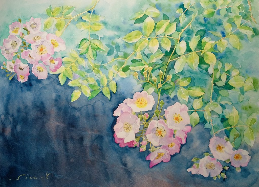 1 24 仕上がりました。 遠くから見て欲しい。 ( ゚ε゚;) 5月に撮ったバラの写真を見て描きました。つるバラです。 水彩紙はファブリアーノEW、F6 #透明水彩 #水彩画 23/08/06 18:29