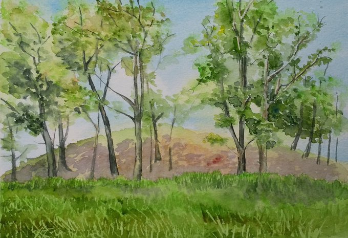日本一大きい船の埴輪が出土した宝塚古墳の横にある円墳を描きました。 水彩紙はセザンヌB5サイズお試し版。マスキングしても 色はさほど剥げない。ウォッシュしたあと、もう少し色がにじむといいかも。でもこんなもんかも。(・e・) #透明水彩 #水彩画