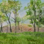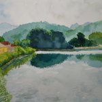 7 103 イングリッシュガーデン隣の溜め池の風景を描きました。 やっぱり空は難しいなあ。 水彩紙はラングトンプレステージF4 #透明水彩 #水彩画 23/06/03 14:37