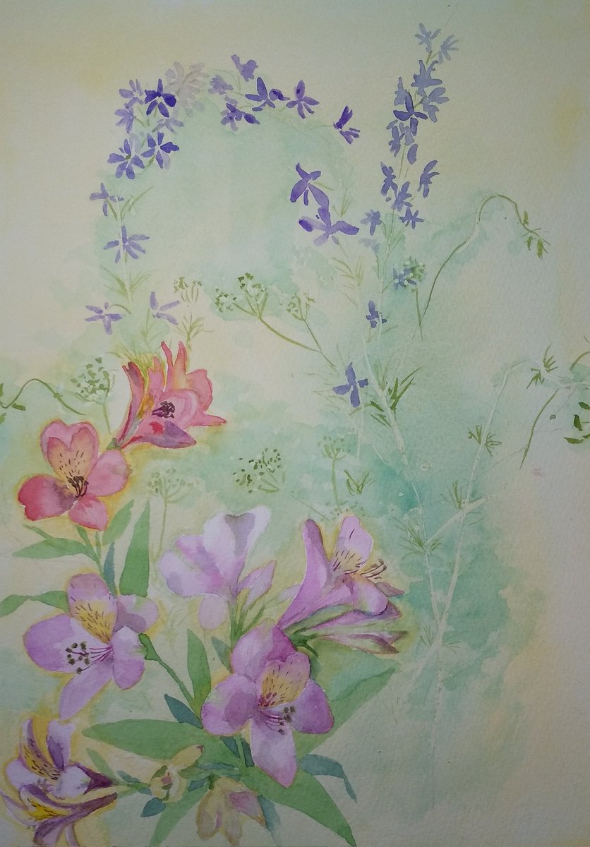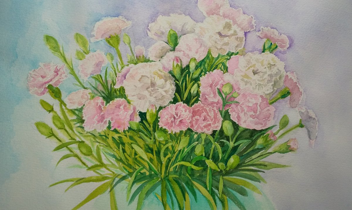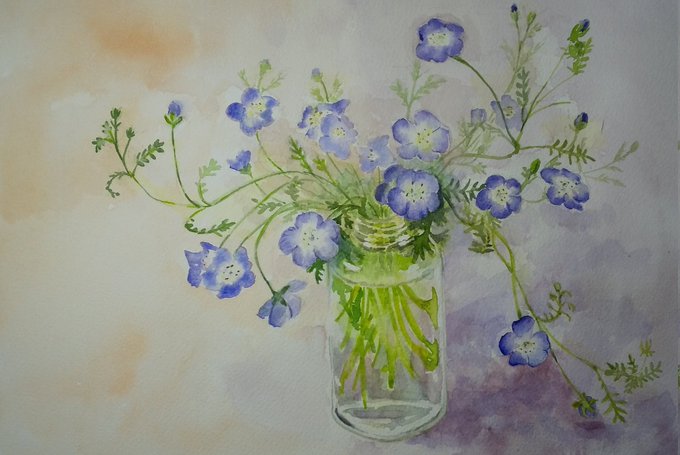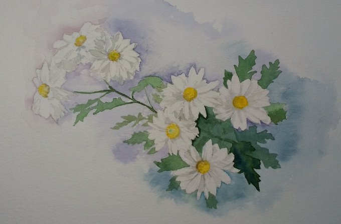 フォロワーさん千人になりました。皆様ありがとうございました。これからもこれを励みに絵を上手に描けるように勉強したいです。 今日スーパーで買った花束を描きました。構図が難しいですね。最近の課題です。 水彩紙はラングトンプレステージF4 #透明水彩 #水彩画