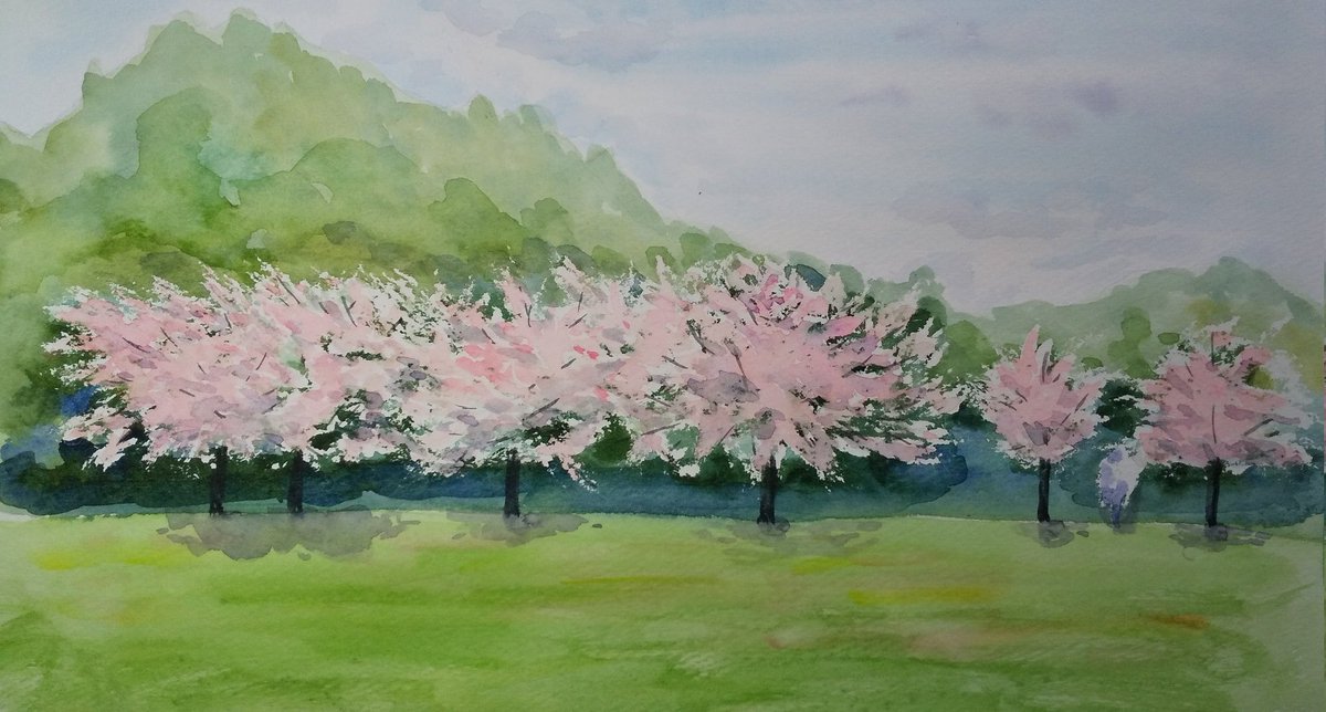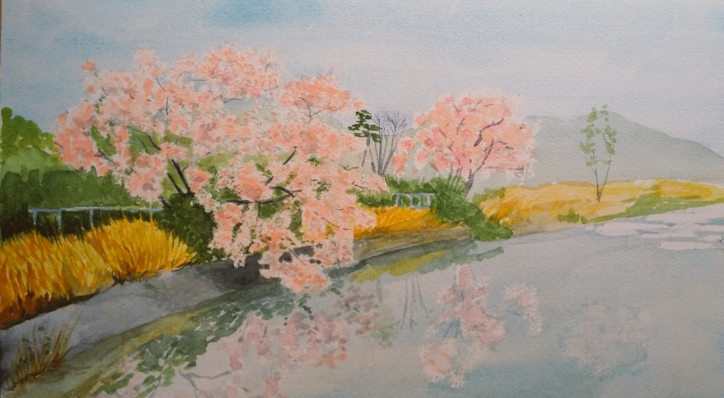 桜色はホルベインのシェルピンクを使っていたけど、違うみたいなので、いろんな先生の動画等見て、オペラとカドミウムイエローとウルトラマリンを混色して描いてみました。 水彩紙はホワイトワトソンF4 #透明水彩 #水彩画