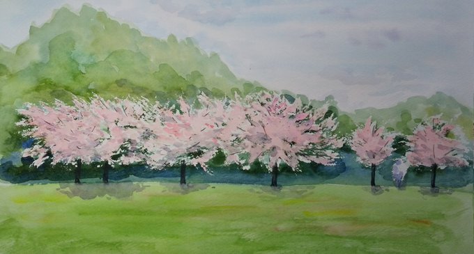 7 113 桜色はホルベインのシェルピンクを使っていたけど、違うみたいなので、いろんな先生の動画等見て、オペラとカドミウムイエローとウルトラマリンを混色して描いてみました。 水彩紙はホワイトワトソンF4 #透明水彩 #水彩画 23/04/01 13:42