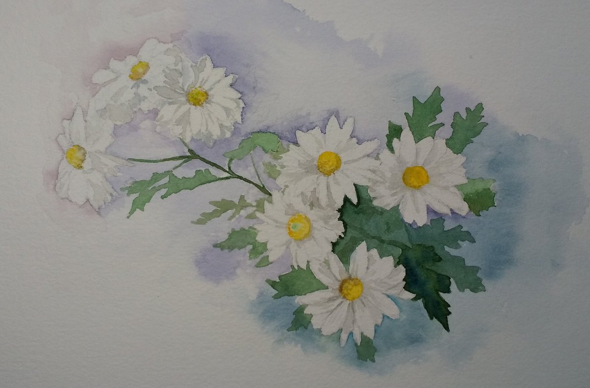 仏花用に買った菊の苗が成長して花が咲いたので、描いてみました。水彩紙はセザンヌB5サイズ。 目の方は画面に保護フイルムを貼ったり、長時間閲覧止めたり、目薬さしたりして状態は良くなってます。 YouTubeの観すぎ?かも。それと年のせい。病院で目の検査必要ですね。( ゚ε゚;)