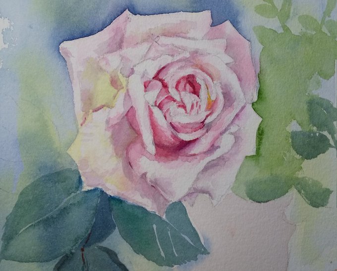 2 31 練習で薔薇を描きました。 5月にイングリッシュガーデンに行き、薔薇の写真をスマホで撮影して、それを見ながら描きました。 ほんとは生花がよいと思うけど、それまで写真で勉強しよう。 水彩紙はセザンヌB5サイズ #透明水彩 23/06/25 18:52