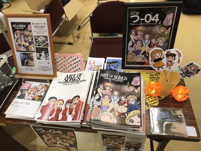 3月12日、シンステお品書きです!メイン頒布物は初のイラスト集「ART OF SONGS」です!フルカラー48P/A4判/頒布価格1,500円!その他、CDも色々持っていったり、はぴはぴ☆ハロウィンの人形の展示も予定しています!ぜひお立ち寄りください!#cin_stage