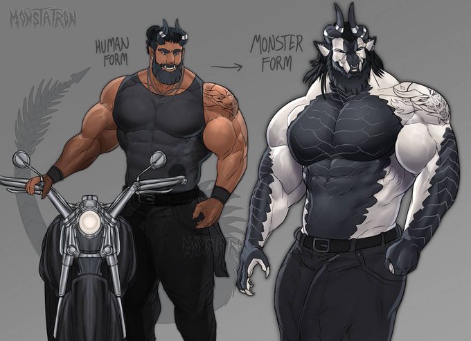 new #oc alert! still working on his human form. i don’t know what name to give him.. drop some name suggestions for this #monster #biker! #Monstatronsart #creatureart #characterart #werebeast #weremonster #monsterart #creaturedesign