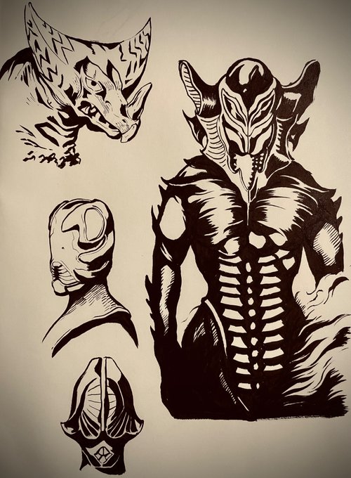 「#神ノ牙-JINGA-」 公式YouTubeチャンネルにてプレミア公開! ▼ EPISODE08『盲信/懐疑』 youtu.be/9t8LlkV4nlE ▼ EPISODE09『無始/無終』 youtu.be/j5DSgC6iZ08 EPISODE08,09とは関係ありませんが、デザイン以来はじめて描く刀眞ホラー態の落書き。