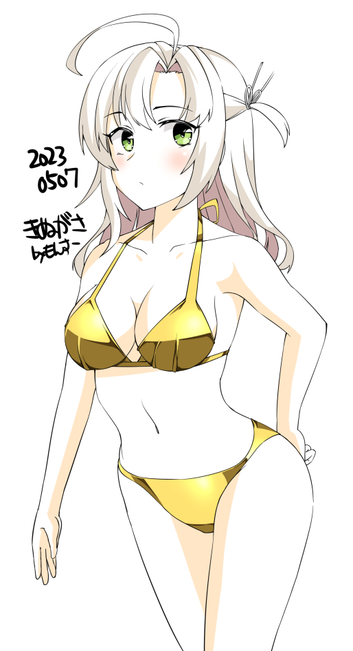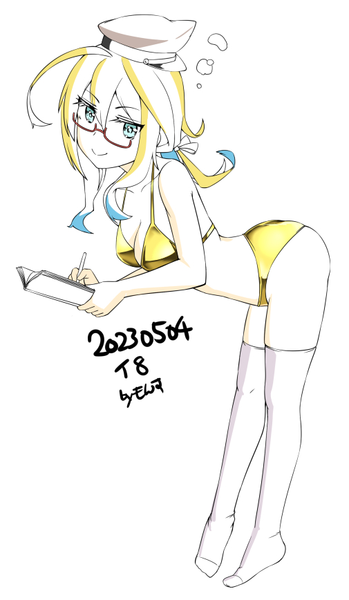 夕暮。GWということで金ビキニを着せらせ、ワキのために謎ポーズをさせられた被害者の夕暮 #艦これ版深夜の真剣お絵描き60分一本勝負 #艦これ版真剣お絵描き60分一本勝負_20230506