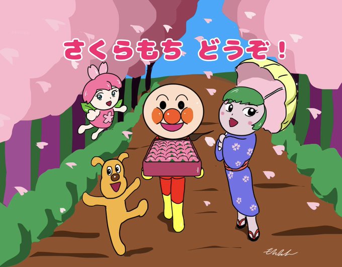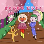#アンパンマン版深夜のお絵かき60分一本勝負 お題「桜」 すみません、今週こそと思っていたのにまたまた失念しており、、慌てて描きました。 しかし、後からセリフ足したらちびぞうか誰かにあげてる方がよかったかも😅