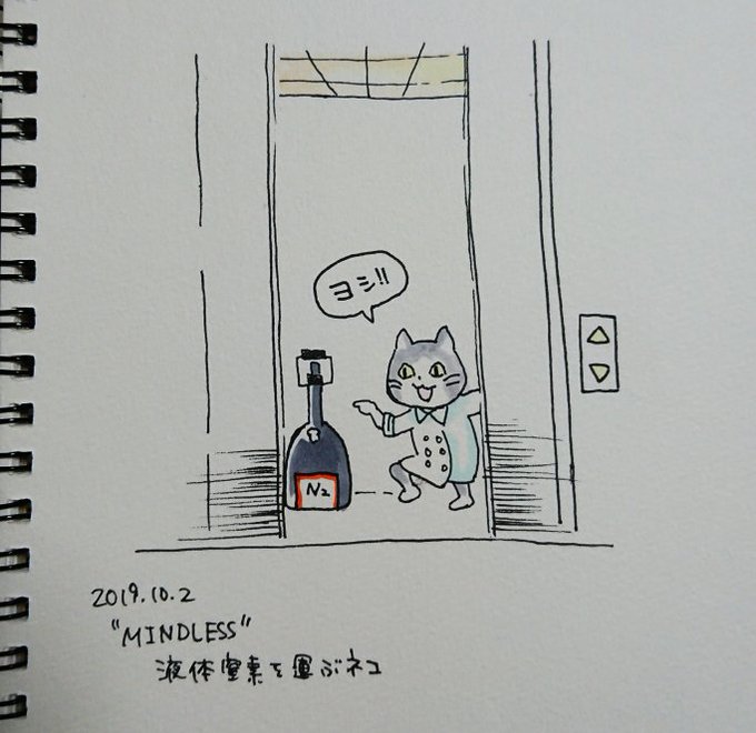 3 12 液体窒素を運ぶネコ / MINDLESS #inktober #inktober2019 #inktoberday2 #現場猫 19/10/02 20:48