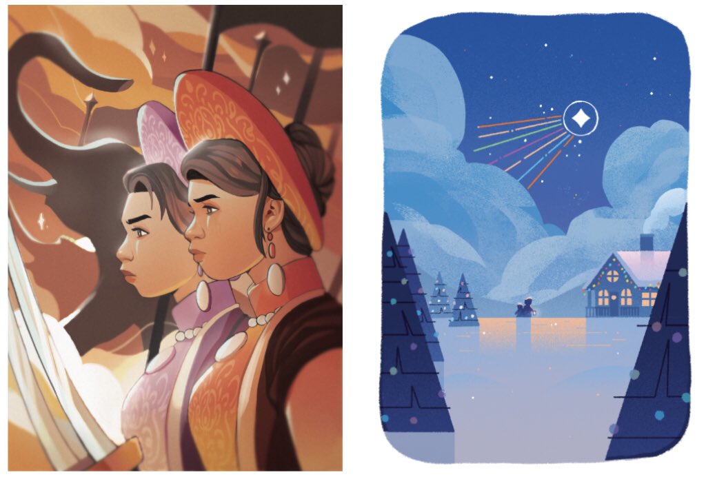 Hey #PortfolioDay!! I’m Mon, a 🇻🇳🇺🇸 illustrator available for freelance in august and/or full time in sept 2022! Pls consider me for ✨bg paint, colorist work/color design, & visdev ✨ ☀️monicanguyenvo.com ✉️monnvart@gmail.com