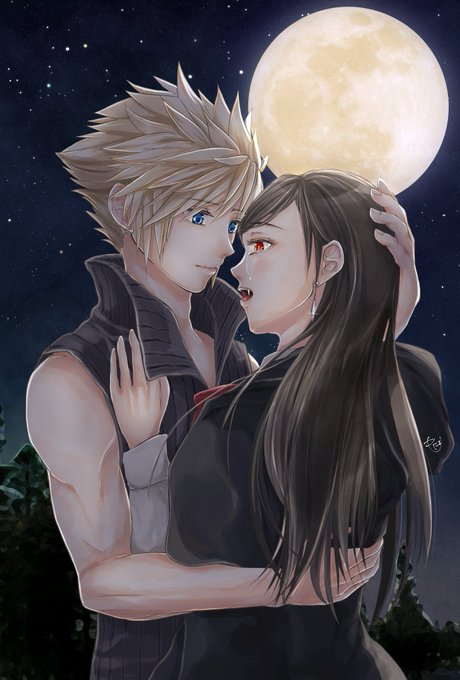 #Clotiween21 Day 7 :vanpaia parallel 7月に出した本の話のイメージイラスト。いつかクラウドが吸血鬼の話も書いてみたいな。🎃🌙🌟💛❤️ #クラティ #cloti