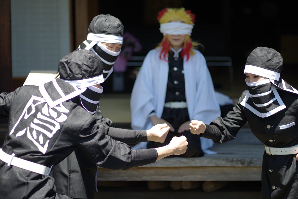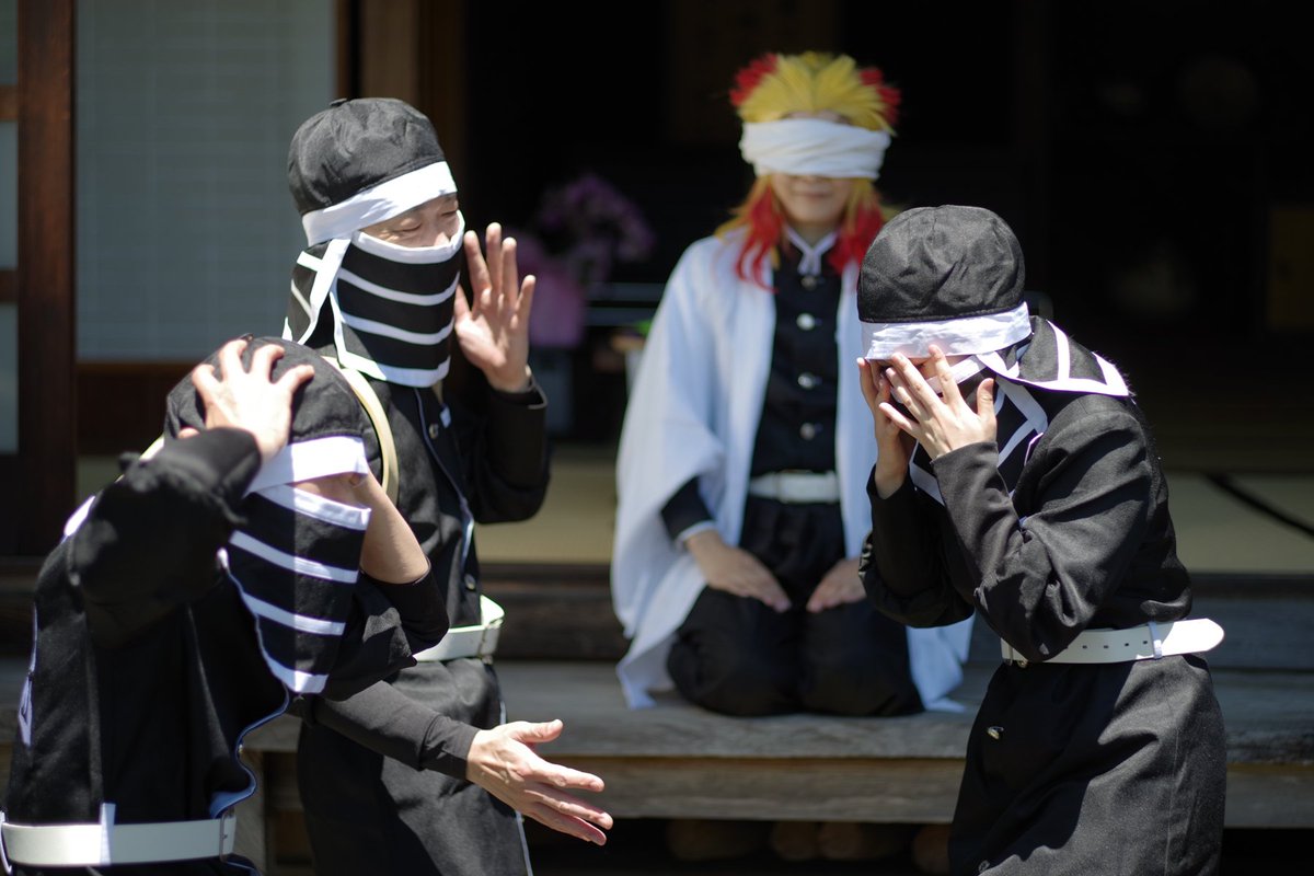 cos/鬼滅の刃 ~隠の日常~ 『煉獄隊士を 刀鍛治の里へお連れする①』 誰が背負うか……決まらないっ!! 🔥「まだかっ!?」 📷:サトーさん 🏠:art spaceほんたく様