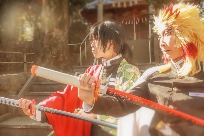 ⚠cos(無加工) そくほー2着目。 捏造現代👹殺隊🌊🔥 🔥:@mochi_yami_1122 様 🌊:もん #深仮催