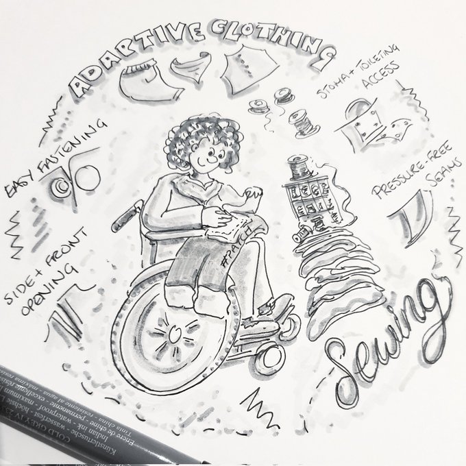 #inktober2021 - an occupation a day - prompt #patch - #sewing adaptive clothing options e.g. easy fastening, side opening, pressure free seams, toileting access #inktober #OccupationalTherapy #CPD