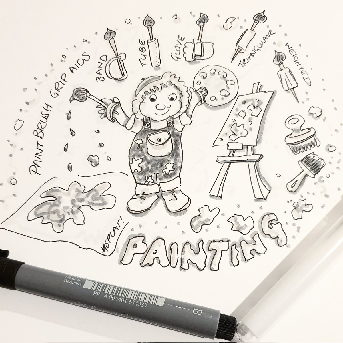 #inktober2021 - an occupation a day - prompt #splat - #painting types of paint brush hand grip aids #OccupationalTherapy #CPD 4 #Inktober