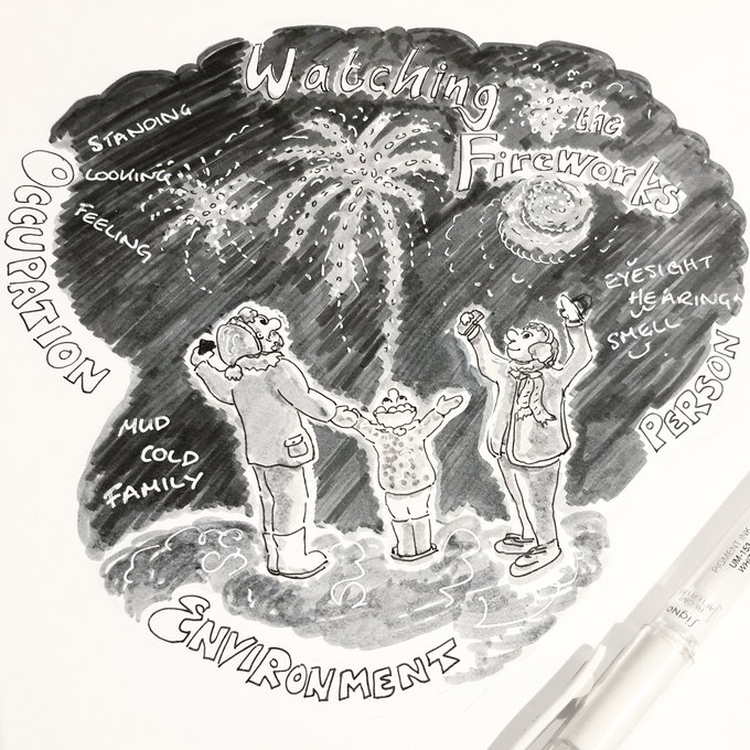 #inktober2021 - an occupation a day - prompt #spark quick person, occupation, environment of watching the #fireworks today #inktober #OccupationalTherapy #CPD