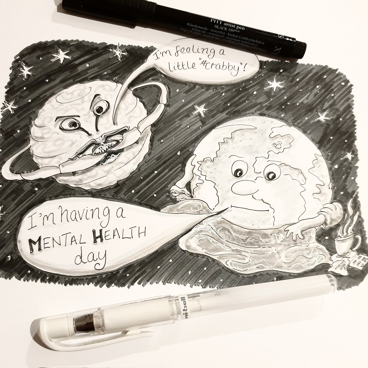#OccupationalTherapy #inktober day10 #crabby - just a quick sketch tonight as I'm tired... It's #worldmentalhealthday more info & resources here: who.int/campaigns/worl… mind.org.uk/get-involved/w… rethink.org/get-involved/a… #inktober2022 & #mentalhealth