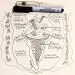 #OccupationalTherapy #inktober day 25 a #tempting #kawamodel of #eating #icecream with river of ocean cream, surrounded by environmental context, including flavour chunks blocking occupational flow and flakes of personal resources.
