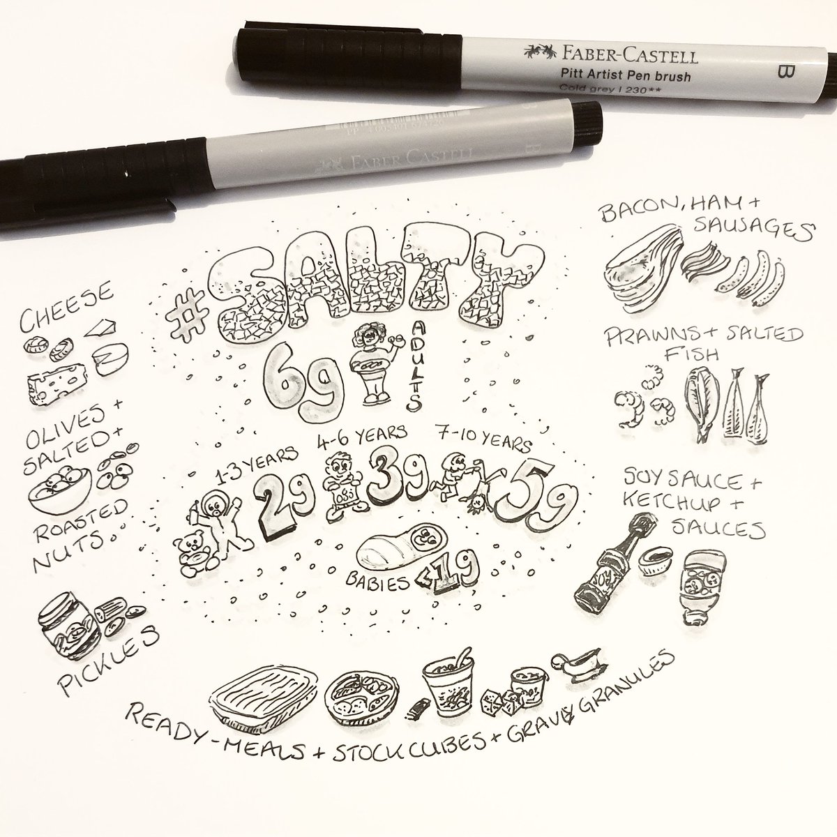 #inktober day 17 #salty #food which may contain a lot of #salt with NHS recommended daily allowances for all ages #inktober2022 #OccupationalTherapy
