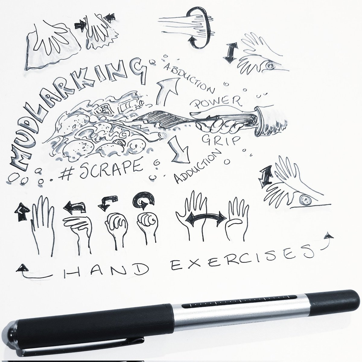 #OccupationalTherapy #inktober day 18 #scrape #Mudlarking hand grip, scraping movement and some basic #arthritis hand exercises #inktober2022