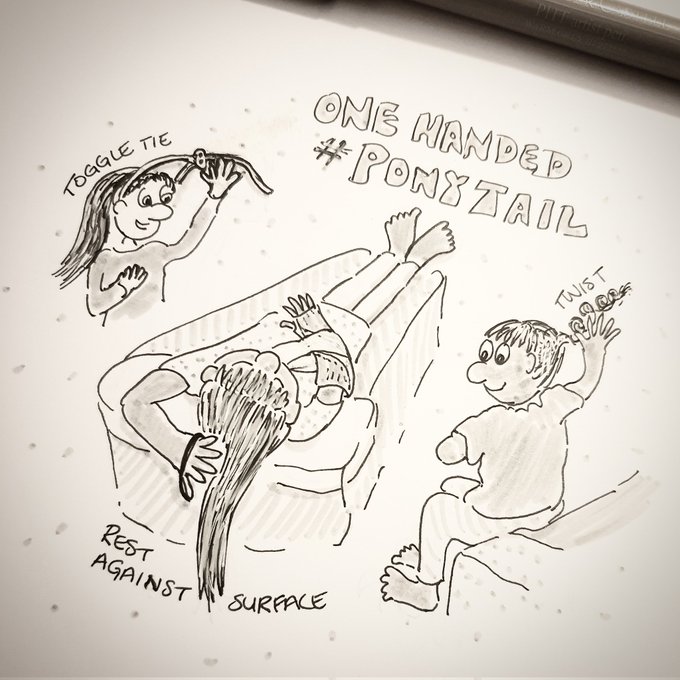 #OccupationalTherapy #inktober day 19 quick few methods to aid tying a one handed #ponytail Whilst I'm here... anyone got any tips they can share for independent haircare for a patient with reduced hand grip & joint pains?