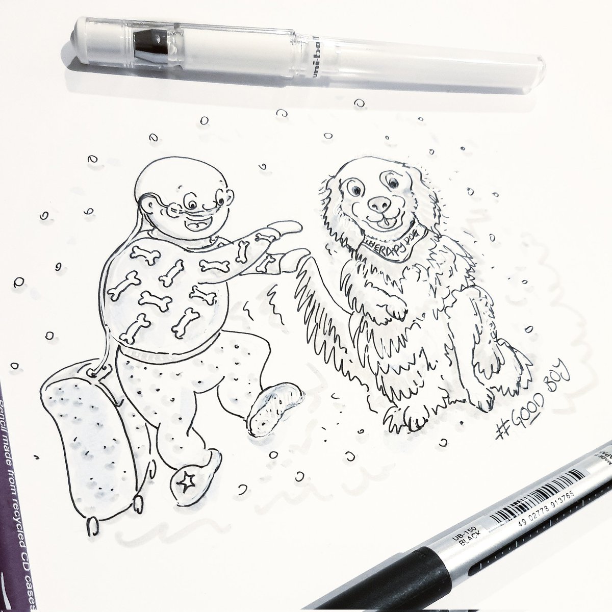 #Inktober day 21 I have absolutely no idea how to relate the prompt #baddog to #OccupationalTherapy ... so here's a quick sketch of a #therapydog being a very good boy! Happy Friday! #inktober2022