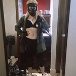 Headed out as #nikaido from #dorohedoro from one of the chapter art pages! Peep my little Gyoza fairy trying to escape. Also...the gyoza glow in the dark. Oops! #nikaidocosplay #dorohedorocosplay #ala2020 #ニカイドウ #ドロヘドロ #コスプレ