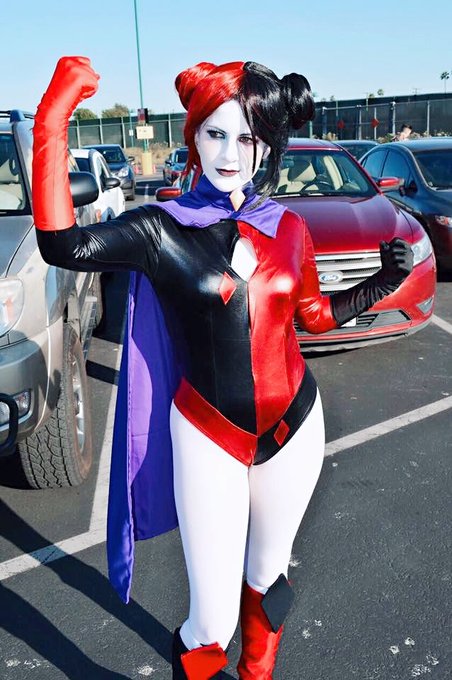 A while back @byojakus took pictures of me as #HarleyQuinn in her Power Girl team-up outfit! We didn't remember to take photos inside of the convention, so we ended up taking pictures in the parking lot! @DCComics #dccosplay #dccomics #harleyquinncosplay #cosplay #comiccosplay