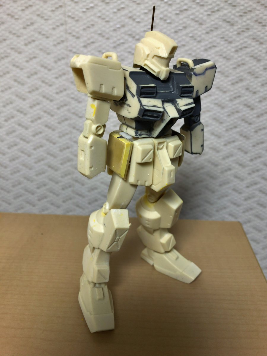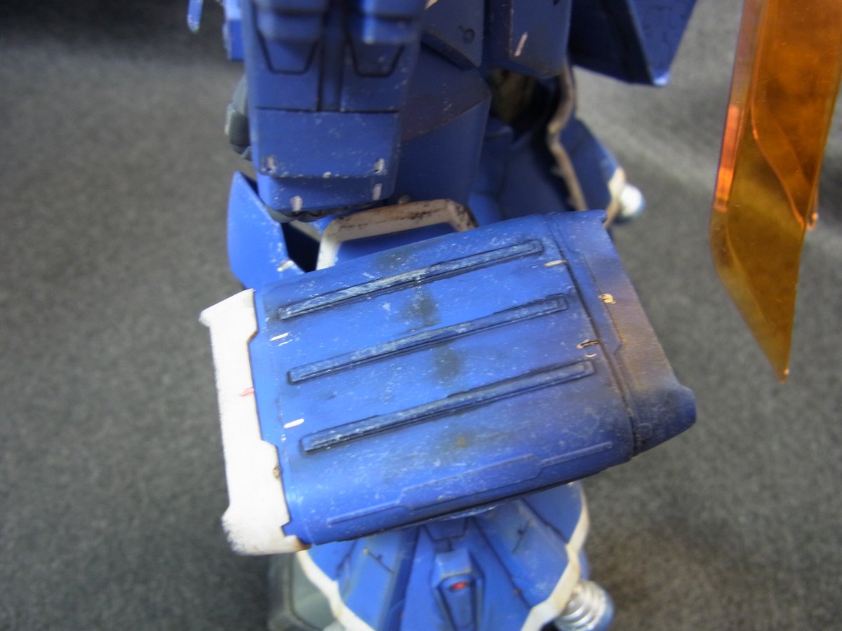 スミ入れ、ドライブラシ、モノアイにクリアパーツ入れました。 色が寂しいのでヒートホーク腰に付けようと追加でパーツ処理です、、、 #ガンプラ #ガンプラ好きと繋がり #ガンプラの画像貼るとRTされると聞いて