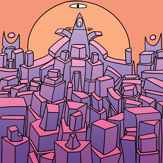 Sunrise (Inkmarch22) The last city under the light #art #artwork #digitalartwork #digitalillustration #OC #originalcharacter #inktober #colorful #original #illustration #city #sunrise