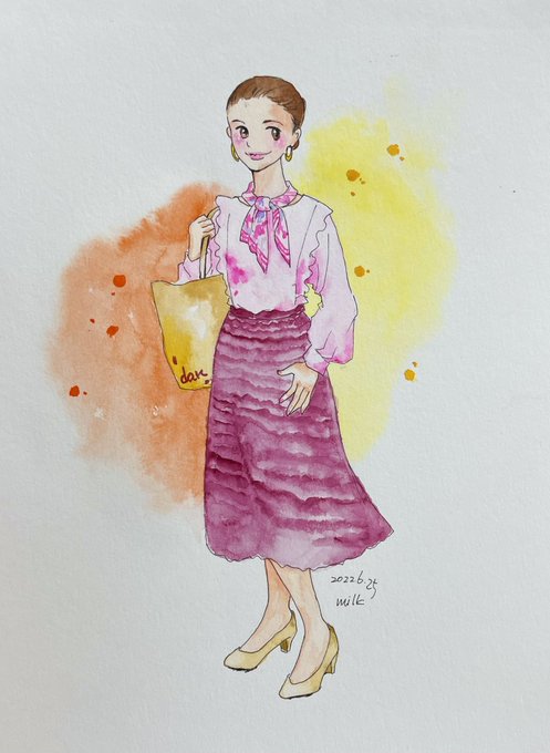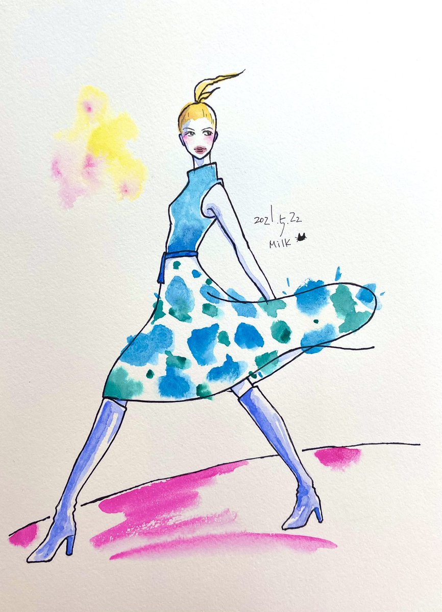 月一のお楽しみ。なのにコロナと推し事の影響で欠席多し💦 本日はミニデモンストレーションとファッション画ぽいものが課題。 ぼかしは楽しいね✨上手く行くと気持ちいいー😊 #illustration #イラスト #水彩画 #watercolor