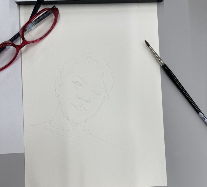 本日はイラスト講座の日✨ なんとなく寄せてみたけど似ていない( ;∀;) ソラで描くとまだまだダメね💦 愛が足りないのか( ;∀;) #illustration #イラスト #水彩画 #watercolor