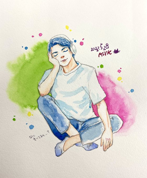 先々月の課題を今ごろ完成させる。 お題を写して描いてるけど、やっぱり推しに寄せてしまう(笑) #ミュージックハングリー をイメージして課題をアレンジしてみました😅 #illustration #イラスト #水彩画 #watercolor #眼福ユウコ