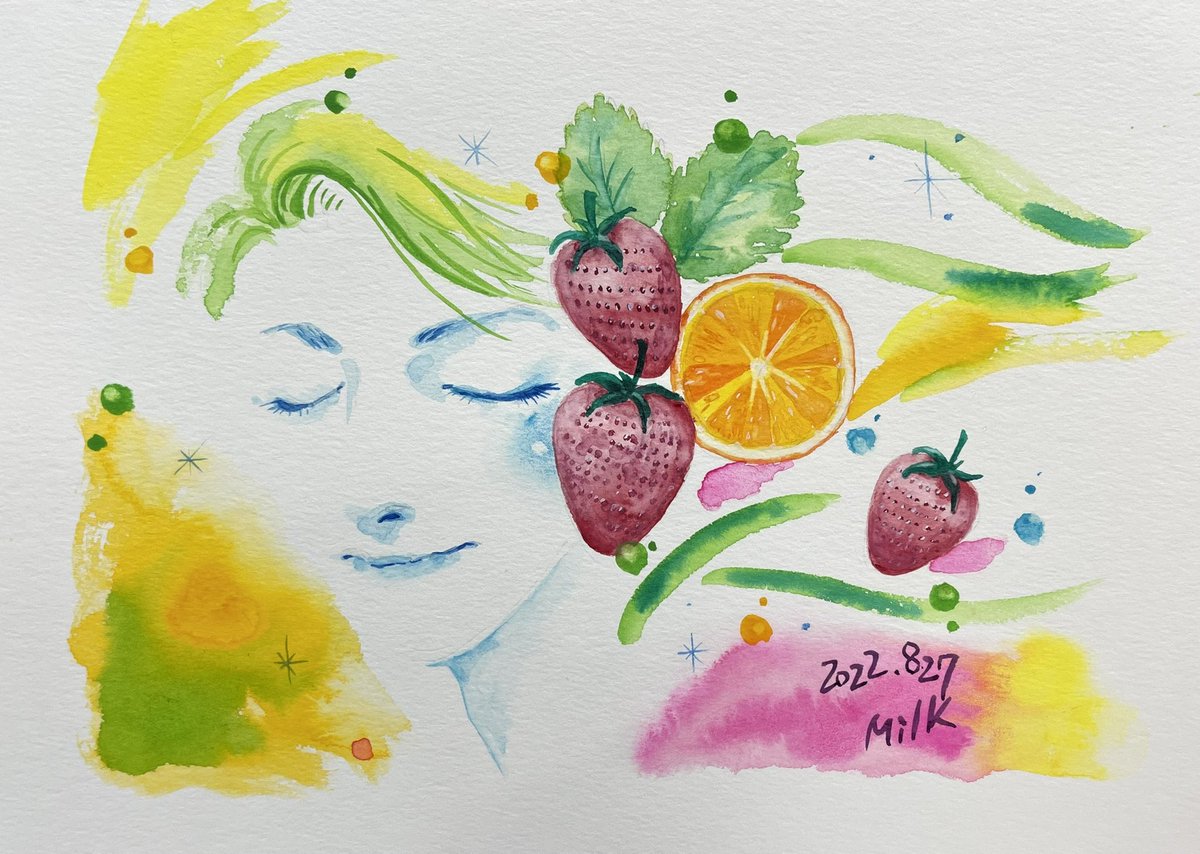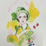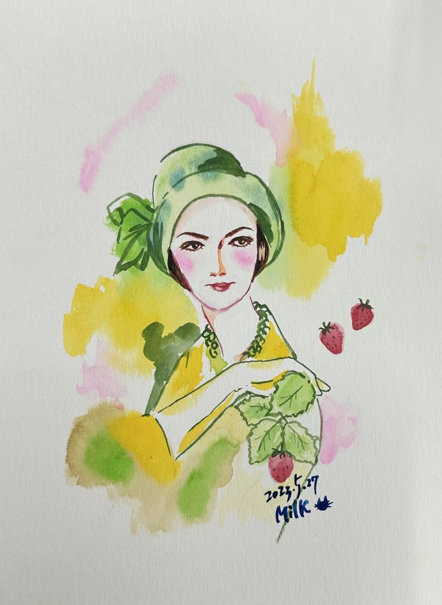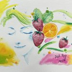 月一お楽しみのイラスト講座。 と、言うことで。描きあげたのがこちら🍓眼福先生にいろいろアドバイスをいただいて完成度を少しでもあげる努力をするる😇 #illustration #イラスト #水彩画 #watercolor