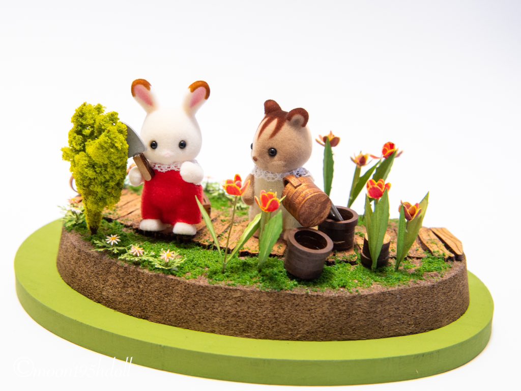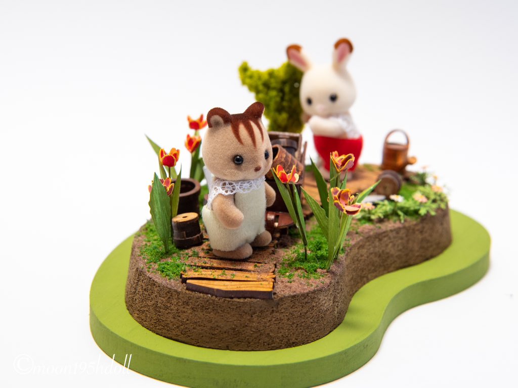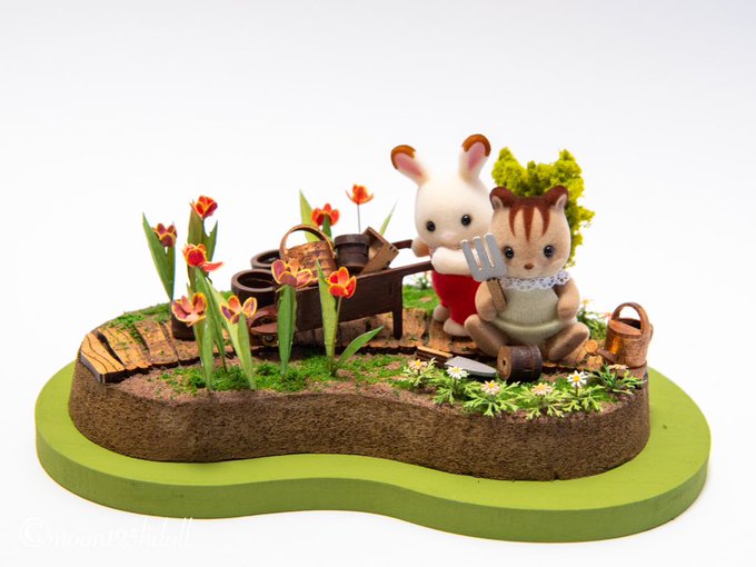トーカイさんのジオラマキット完成!!お人形二体も付属です。 小物は自分好みで塗装します。 小物はツリーに続きます。 #PR #シルバニアファミリー #sylvanianfamilies #シルバニア公式アンバサダー