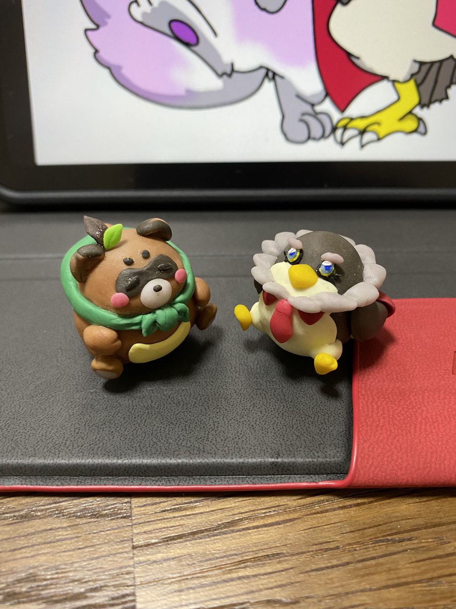 がんもとぽこべぇをデフォルメっぽく粘土で作りました お尻を可愛くさせることに命をかけました めちゃくちゃ可愛いですね☺️ #Luillust #いろはにも絵を