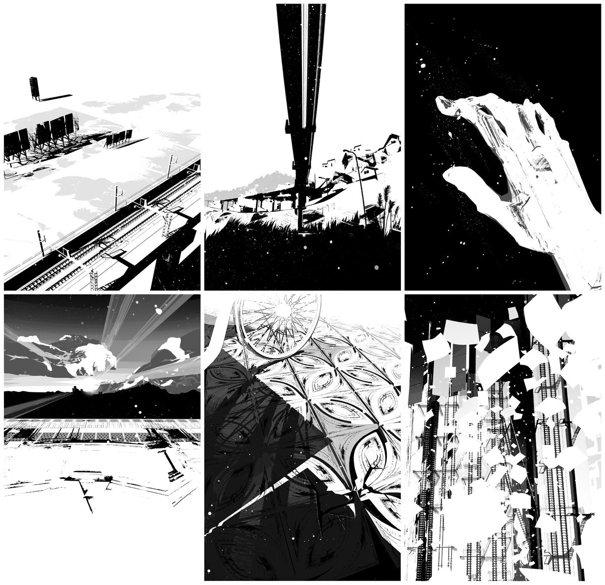 #このタグを見た人はラフ画とその完成絵を見せる 藤井太洋 著『ワン・モア・ヌーク』装画 ラフA,B提出。Aの方向でいきましょうと。ただ色を落ち着かせて&人をもっと小さく。それを踏まえてモデリングも詰めてラフリテイクCを提出。更にいくつかの修正指示があって完成。