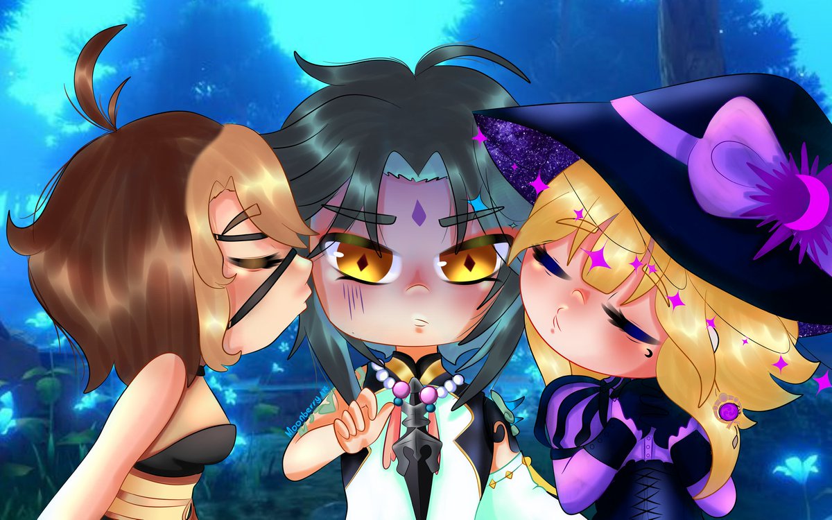 El poliamor es lo de hoy manos 😎 Un dibujo que hice con Xiao un fc de Suzu Yoshida y mi fc de genshin que aun no diseño al 100% la hice únicamente para esta imagen xdd Beso de tres o qlo Xiao 😈 #GenshinImpact #miHoYo #genshinimpactfanart #ArtistOnTwitter