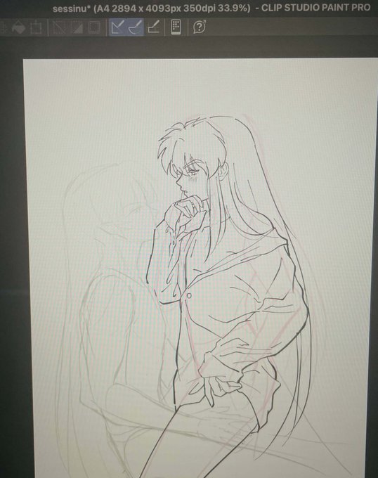 早く仕上げないと夏が過ぎちゃう!と思いつつ、5回くらい描き直しした🙃お兄ちゃんは線画さえ始まってないね🫠待っててよ #犬夜叉 #絵描きさんと繫がりたい #inuyasha #ibisPaintX