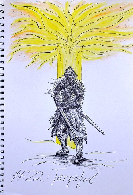 .@soulstober Day 22: Tarnished "The Tarnished will soon return. Guided by Grace once lost..." #Soulstober2021 #inktober2021 #Inktober #traditionalart #fanart #art #EldenRing