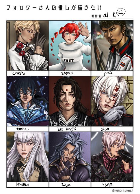 5 13 thank you to everyone who suggested! i’ll be posting the full pieces one a day 🥰 #フォロワーさんの推しが描きたい 22/03/14 07:11