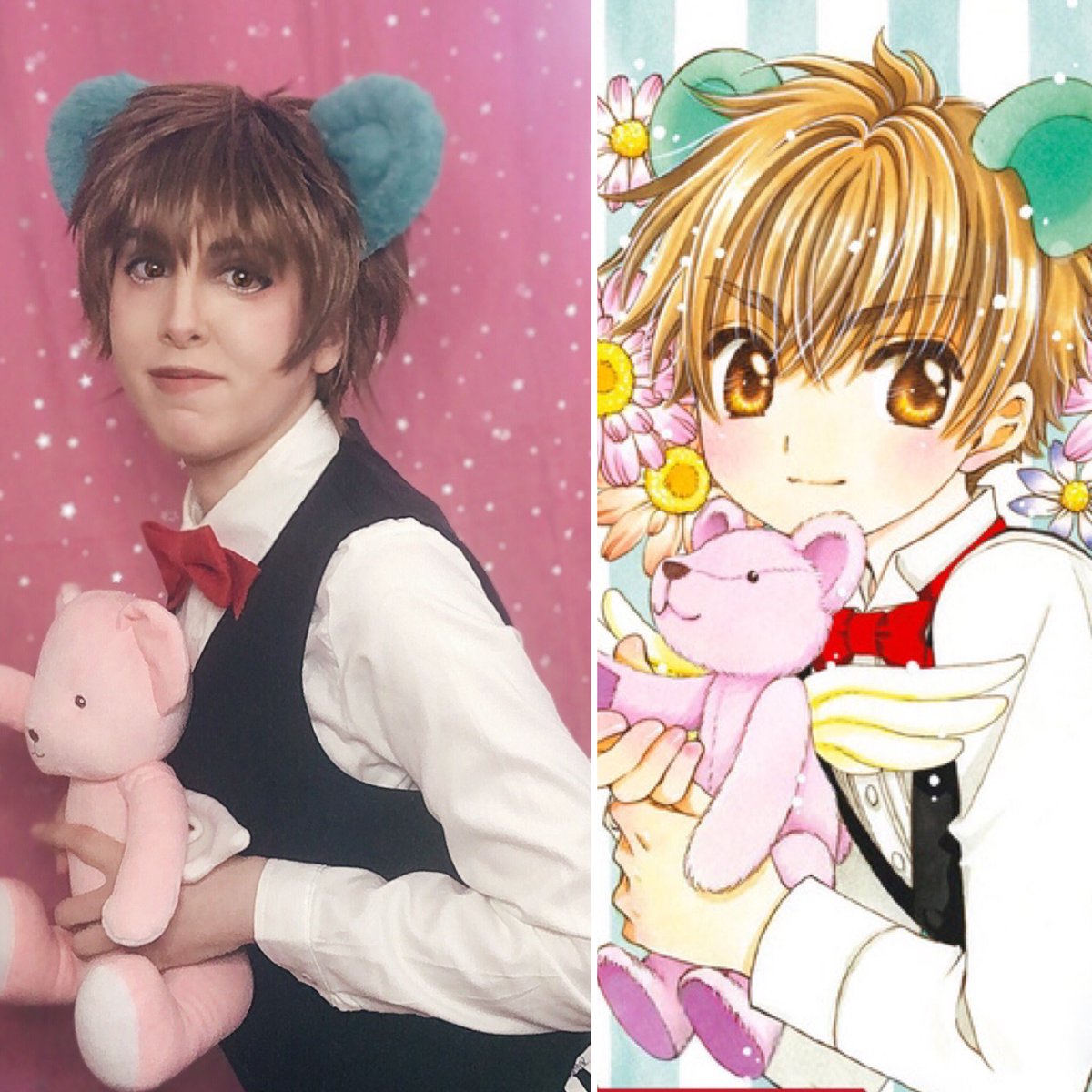 💕🐻Let’s always, always and forever be close with one another🐻💕 Cosplay + wig by allensato_cos on IG, and vest + bear is from Amazon! #CardCaptorSakura #cardcaptorsakuracosplay #syaoran #syaoranli #cosplay