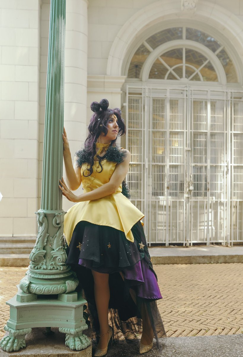 My human Luna cosplay, 2017 vs 2021! I remade the yellow dress, neck bow, and poofs, added TONS more crystals and star filigree on the underskirt, and put extra petticoats under the skirt ✨I've gradually added to her over the years but I'm proud of how she's wound up 🥹💕 twitter.com/lumikhacosplay…