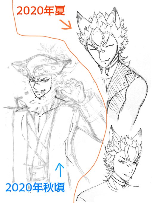 ずっと男の人を描くのが苦手で描けなくて見る専だったけど2020年の夏くらいから遂に練習を始めたのであった… #画力ビフォーアフター