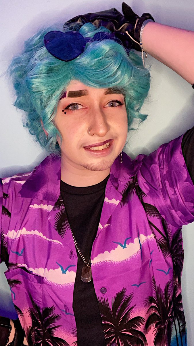 just a cos-test for Mr. Mick Mercury from The Penumbra Podcast🏍💜 . check out @thepenumbrapod !! it’s definitely worth the listen im obsessed😍 . #mickmercury #thepenumbrapodcast #cosplay