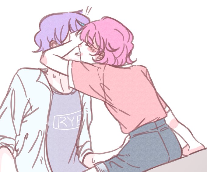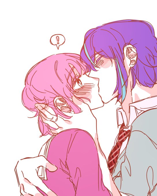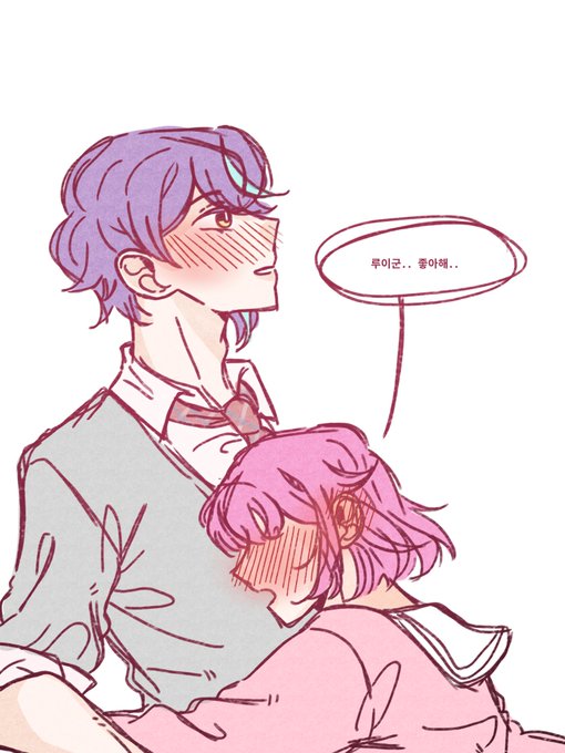 #Prsk_FA #prsk_NL #類えむ 저렴 루엠... 왠지 이런 루이에무가 보고싶었달까.., 장난으로 뽀뽀하는 에무와 놀라는 뤼... 😘☺