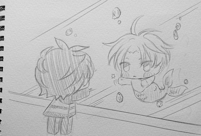 今日の落書きφ(..) 例のタグアンケートを見て頭に浮かんだのを そのまま描いてみた。 こえだを人魚にするには私の画力じゃ等身が大きくなるんだよなぁ。 (こえだの状態でも実物より等身大きめだが…) おやすみなさい😌💤