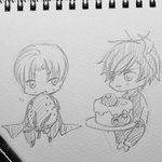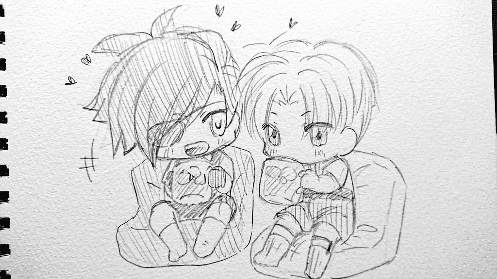 今日の落書きφ(..) 寝る時間が来たので、一緒に寝ようと へしちゅんが みつちゅんを誘いに来たようです。 燭台切『あ、いいなぁ~。僕も長谷部くんからお誘いして欲しいなぁ~😊💕💕』 長谷部『…寝るぞ。』(これが精一杯)